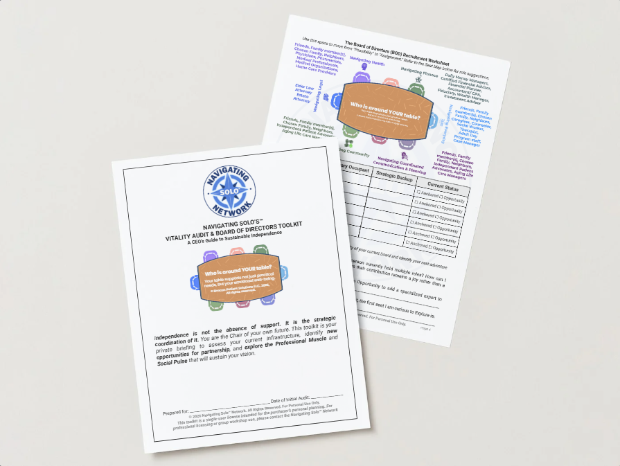 A Note on Accessibility: We believe every solo ager deserves a clear path. We offer a range of resources - from interactive free tools to professional-grade executive suites - so you can choose the level of investment that fits your life today.