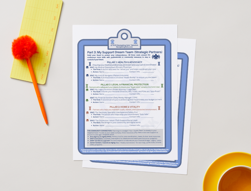 We advocate for solo agers by developing and providing tools that honor autonomy. Every resource here is designed to ensure that your voice remains the leading one in the room, now and in the years to come.