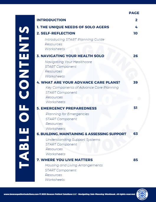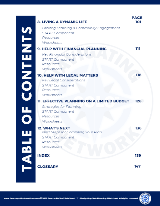 Whether you're just beginning to explore what it means to age solo or you're ready to refine and organize an existing plan, this workbook empowers you to take charge, get organized, and feel ready for what’s next.