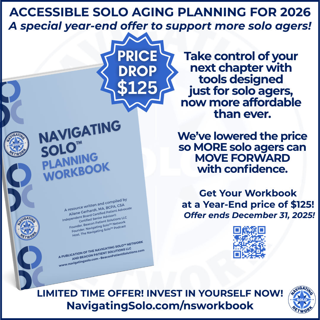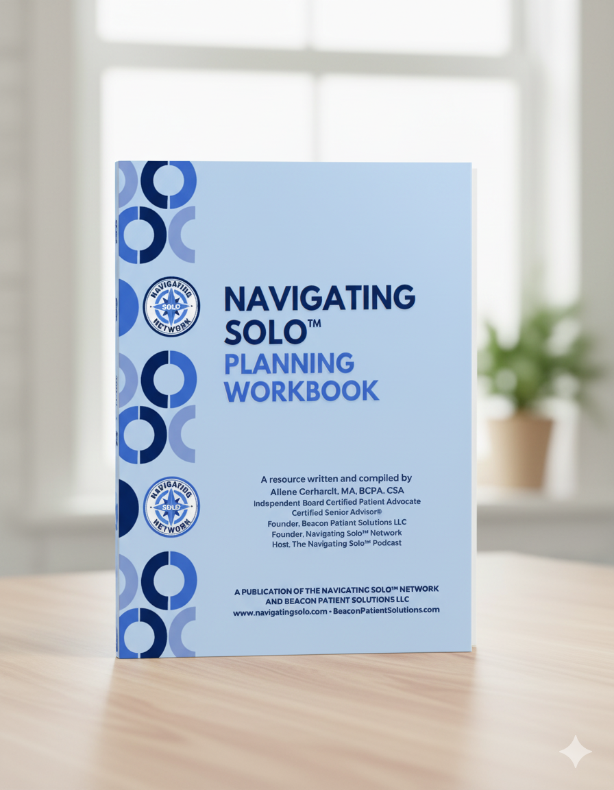 Created by Ailene Gerhardt, BCPA, CSA, Founder of the Navigating Solo™ Network and Beacon Patient Solutions LLC